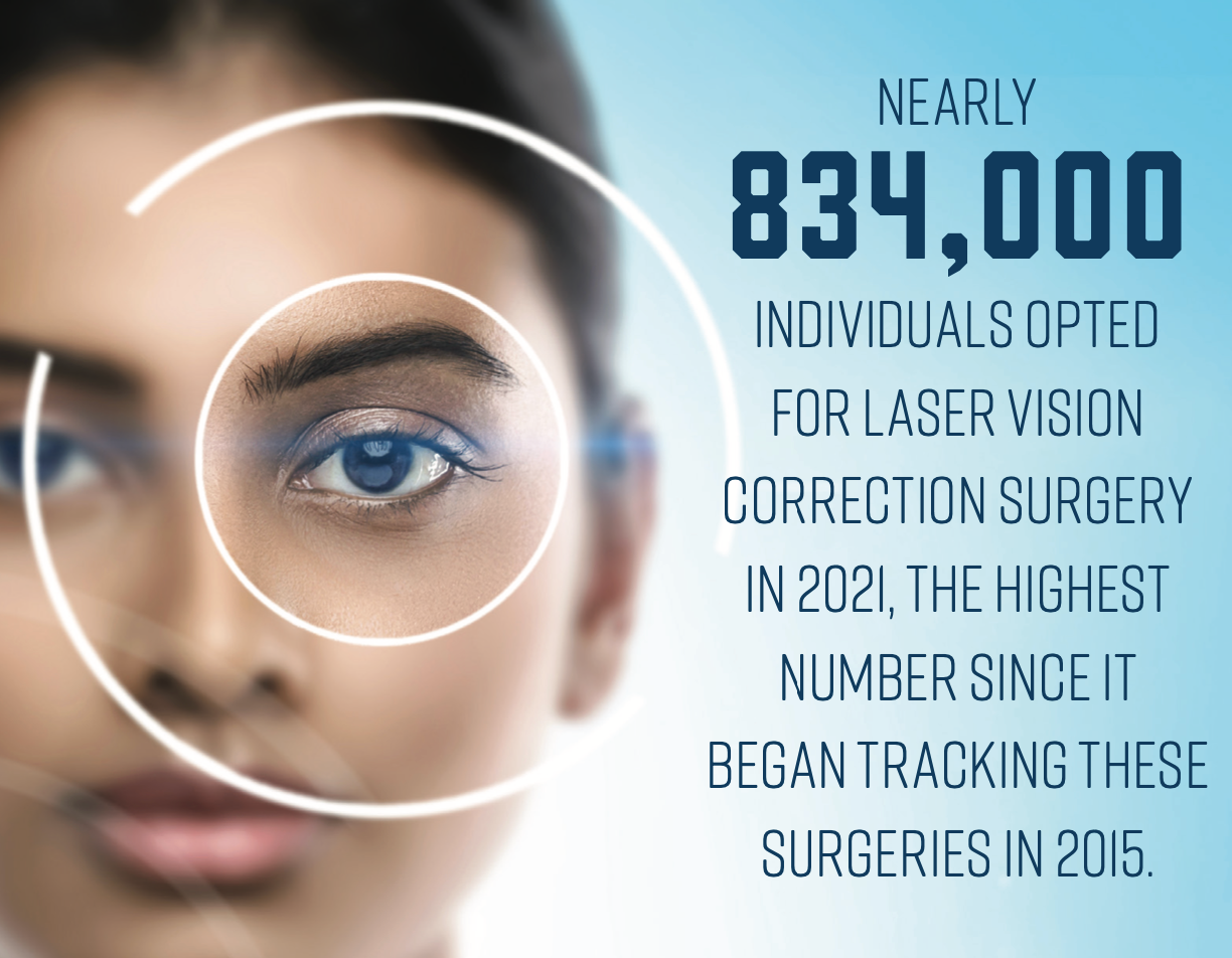 Los procedimientos de errores refractivos, como la queratomileusis asistida por láser (LASIK), pueden ser una parte importante de las prácticas de los oftalmólogos. La demanda está creciendo. La Junta Estadounidense de Cirugía Refractiva estimó que casi 834,000 personas eligieron la cirugía de corrección de la visión con láser en 2021, la cifra más alta desde que comenzó a rastrear estas cirugías en 2015. LASIK es a menudo un punto de entrada al cuidado de la visión para los pacientes y puede Una buena experiencia conduce a una Relación duradera entre el paciente y el oftalmólogo.