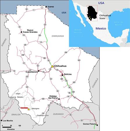 (Mammoth Resources a través de Tenoriba Property, Estado de Chihuahua, México. Haga clic para ampliar).