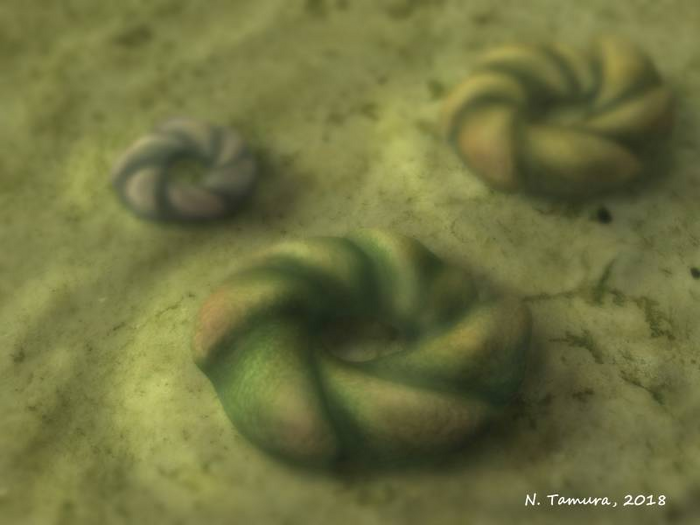 El animal tenía un diámetro promedio de media pulgada y tenía «la forma de una rosquilla francesa con cintas en la parte superior», dijo Boan. No se movía solo y es probable que pasara toda su vida en su lugar favorito en el fondo del mar.