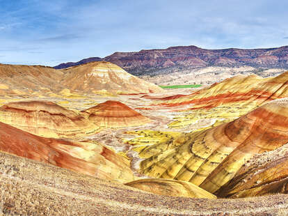 La estrella del espectáculo, Holman, aconseja llegar temprano a la unidad de Painted Hills, ya que tiende a ser la más concurrida de las tres. Estas extensas tierras baldías están llenas de brillantes tonos de rojo, dorado y rosa. Puede elegir entre cinco rutas de senderismo que varían en dificultad, pero la más popular es Painted Cove Trail, un sendero de madera nivelado que lo lleva directamente a través de colinas de arcilla roja. Para una vista panorámica desde la cima, Tome el sendero Carroll Rim Trail de 1,6 millas.